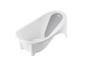 Los recién nacidos cuentan con el soporte que necesitan con un apoyacabeza de espuma y un respaldo para sus espaldas a fin de ayudarlos a mantenerse cómodos mientras se acuestan y bañan. Y a medida que tu bebé crece, puede bañarse en posición vertical con espacio para sentarse y quedar limpio.