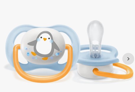 - Tranquilice a su bebé con un chupón que permite que su piel respire. La colección ultra air de Philips Avent tiene orificios de gran tamaño para mantener la piel seca. Su cubierta liviana está diseñada para un flujo máximo de aire.