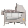 - La cuna corral incluye un organizador multifuncional con pañalera y dos compartimentos, pensados para tener todo al alcance de la mano.