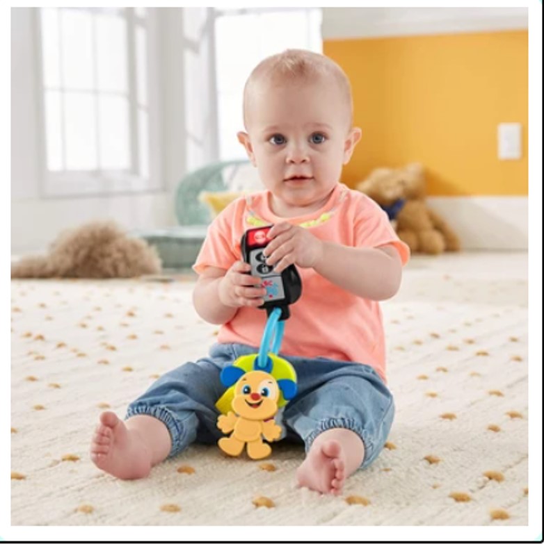 - Ábrele caminos a tu bebé con este set de llaves, que incluye una suave de perrito y una realista que activa música, sonidos de vehículos y una luz.