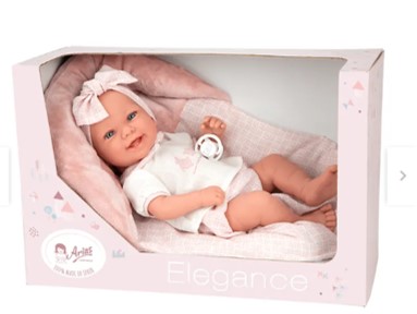 La muñeca ELEGANCE 42 cm ZOE en tonos rosa es simplemente encantadora. Con su cuerpo y extremidades de vinyl, emana un agradable aroma a vainilla que te hará querer abrazarla todo el tiempo. Su sonrisa y sus ojitos rasgados te robarán el corazón al instante.