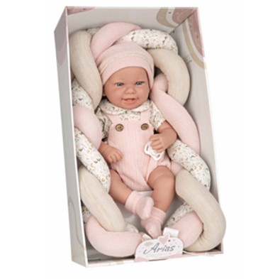 Muñeco ELEGANCE de 42 cm Zoe rosa con cojín de Arias , es la definición de la elegancia y la dulzura en forma de muñeca. Con un cuerpo y extremidades de vinylo que le dan un aspecto realista y adorable, Zoe está vestida con un precioso pelele rosa empolvado y una camisa estampada a juego que la hacen lucir como toda una princesa. Pero lo que realmente hace destacar a Zoe es su cojín a juego, perfecto para que pueda dormir la siesta contigo y sentirse cómoda y protegida.