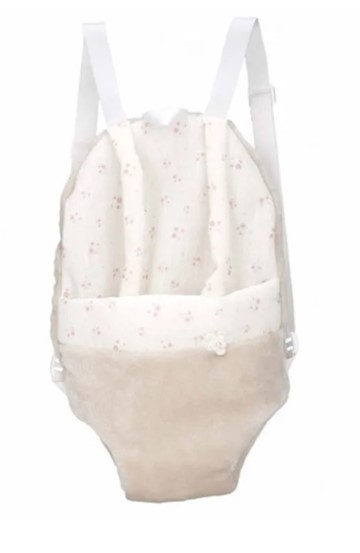 Con un diseño elegante en color beige y detalles de estrellitas blancas, este portabebé combina estilo y funcionalidad. Las correas ajustables y acolchadas aseguran un ajuste cómodo para los niños, mientras que el compartimento principal mantiene al muñeco en su lugar durante los paseos y las actividades diarias.