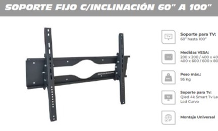 - Soporte para televisor de 60 a 100″ fijo con inclinación
