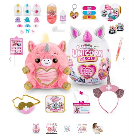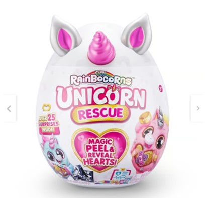 - Rainbocorns: ¡ son el huevo sorpresa definitivo! Combinando un desempaquetado misterioso, sorpresas extravagantes y peluche tierno, ¡Rainbocorns seguramente será tu nuevo mejor amigo! Hay tantas sorpresas para encontrar: Boo-Boocorns, corazones revelados e incluso caca de Rainbocorn… ¡Las capas de magia y emoción nunca terminan! Hay tantos nuevos Rainbocorns saliendo del cascarón de Rainboville. ¿A quién encontrarás?