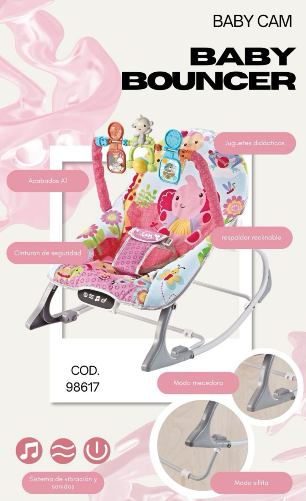 Silla Mecedora Musical, Baby Cam, Bluetooth, Rosado,98617